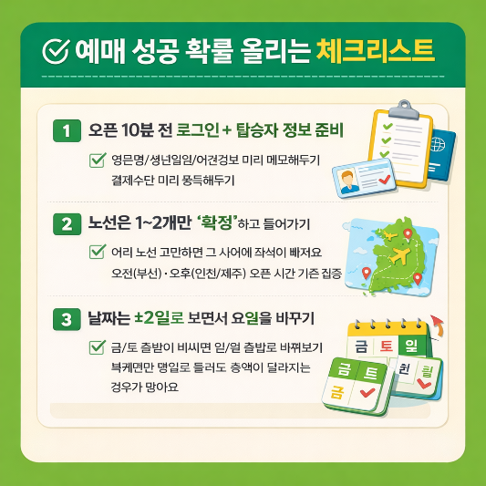 결국 진에어 특가 잡는법은 “✔️오픈 시간 맞추기 ✔️결제 동선 단축 ✔️혜택까지 합산” 이 3가지만 지키면 성공률이 확 올라갑니다.